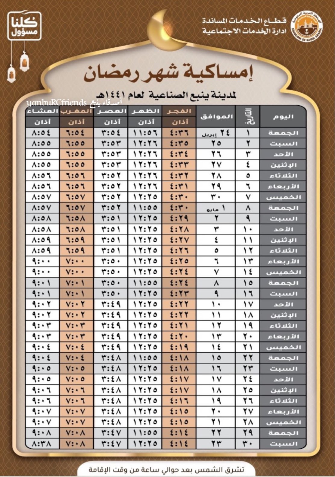أصدقاء ينبع الصناعية On Twitter إمساكية شهر رمضان ١٤٤١هـ ينبع